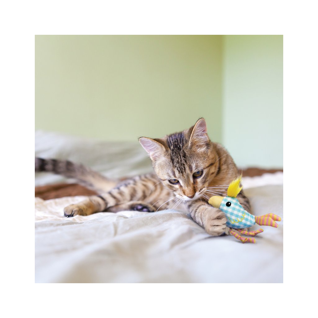Aktivujte hravost svého koťátka s KONG Kitten Chirpz Chick. Pohybem vyvolaný zvukový čip hračky Vás zavede do světa písničky, která okouzlí Vašeho mazlíčka a přiměje ho ke hrám. S menší velikostí je ptáček ideální pro drobné kočičí tlapky a dlouhé nohy. Hebká peříčka nabízejí možnost pro chňapání a pronásledování. Při každém zásahu se nožky a peříčka roztřepí, což zvyšuje vzrušení ze hry. Navíc, prémiový catnip značky KONG ze Severní Ameriky zajišťuje, že hra bude trvale zajímavá.