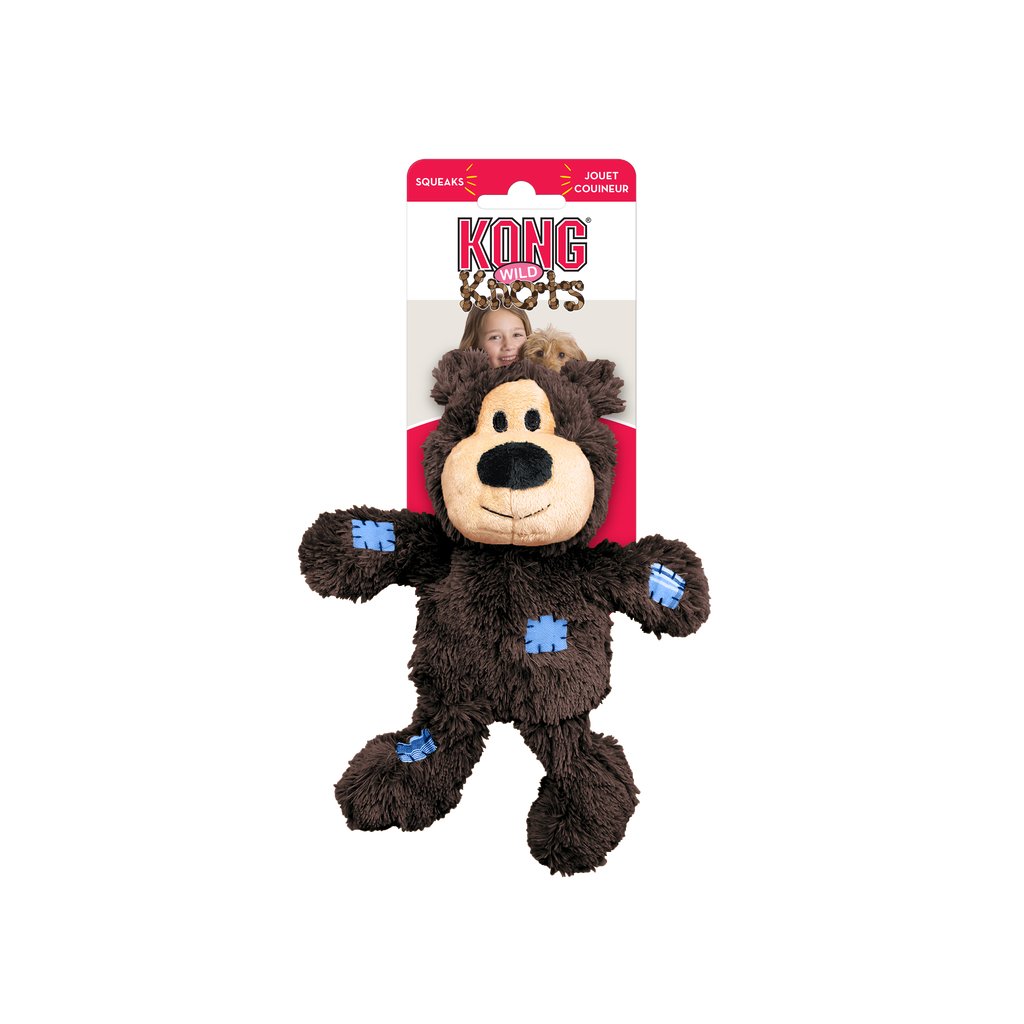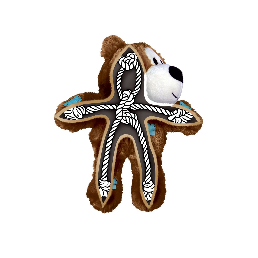 Plyšová hračka KONG Knots medvěd je pevná, interaktivní hračka určená k přetahování, které psi milují. Každá hračka má lano zapletené uvnitř, při čemž z venku ústí v úchytech na každé straně. Jedinečný vzhled podkreslují pevné struktury, tolik oblíbené u psů. Navíc obsahuje pískátko pro zvýšení zábavy. Je skvělá pro přetahování, pomáhá zbavit se nudy a stresu, stimuluje mysl a tělo. Hračka má méně náplně pro méně nepořádku.